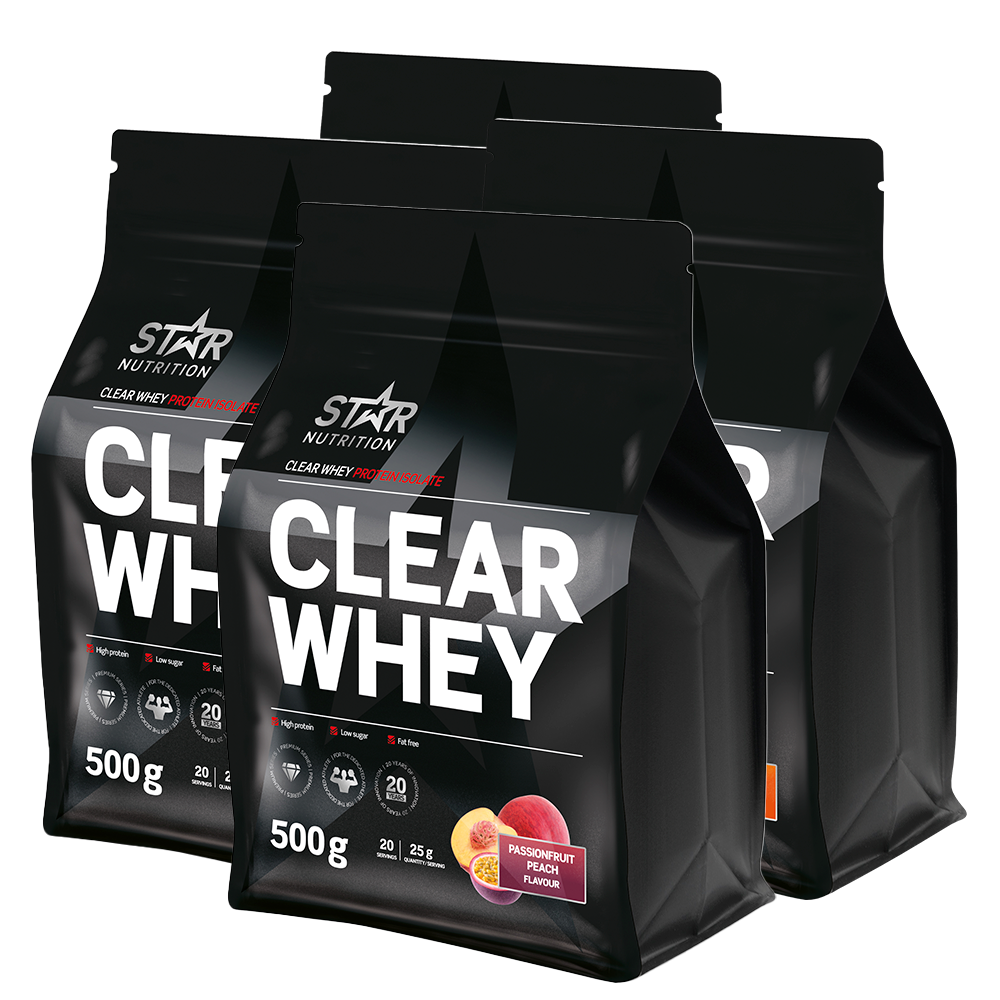 4 x Clear Whey fra Star Nutrition er et høyt renset myseproteinisolat med lavt innhold av laktose, sukker og fett. Lettdrikkelig med en saftig smaksprofil for deg som ønsker det beste mulige proteinet.