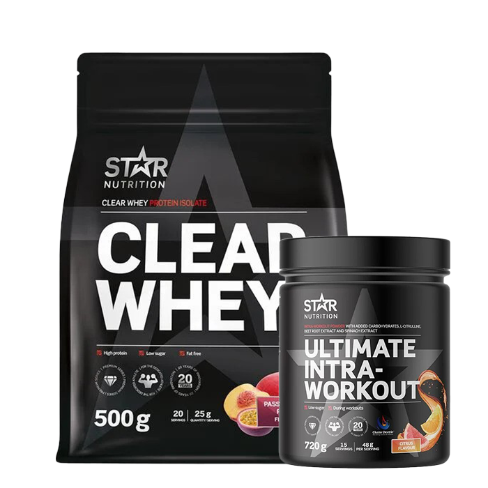 Clear Whey Myseprotein 500 g + Ultimate Intra Workout Karbohydratpulver 720 g