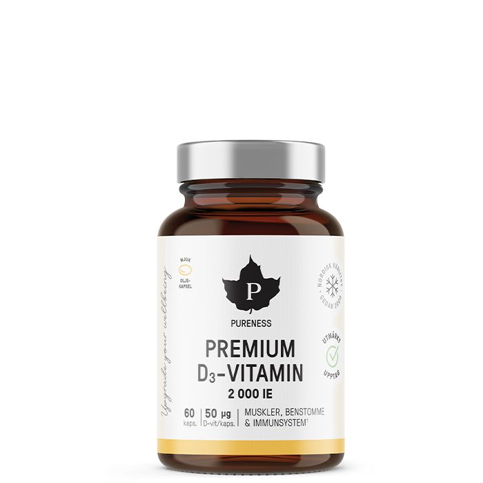 Premium vitamin D3 60 kapsler er et kosttilskudd fra Pureness. Med vitamin D i myke, lette å svelge kapsler som inneholder fiskeolje og vitamin A og E.