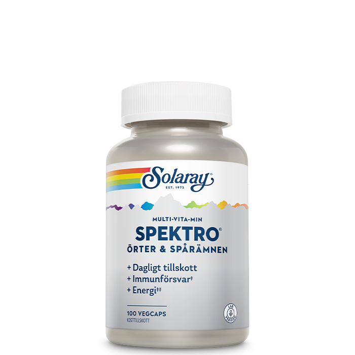 Solaray Spektro Multivitamin med jern er et kosttilskudd med en bred sammensetning av vitaminer, mineraler, sporstoffer og urter.